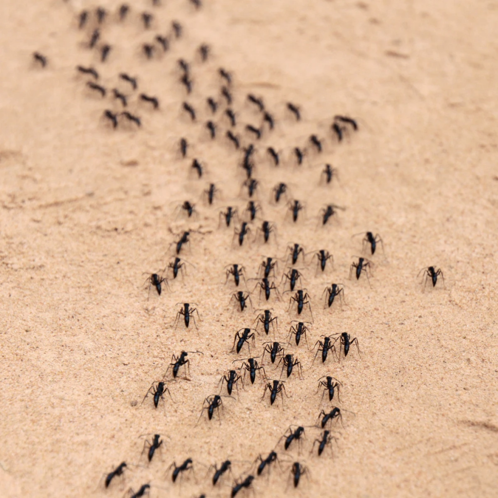 Las hormigas son exploradoras constantes. Su sistema de comunicación les permite encontrar fuentes de comida a gran distancia y marcar rutas para que el resto de la colonia las siga. Una simple miga puede convertirse en una señal suficiente para atraer a decenas.